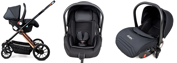 Автокрісло-переноска категорії 0+ призначене для діток від народження і до 13 кг. Воно встановлюється н раму Ninos Estrella за допомогою адаптерів (перехідників), які входять до комплекту. В автомобілі автокрісло фіксується штатним ременем безпеки і встановлюється виключно в напрямку проти руху авто.